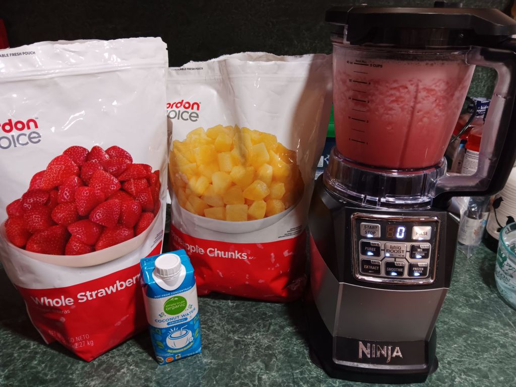 All you will need is a blender, coconut water, frozen fruit, and a pinch of salt.