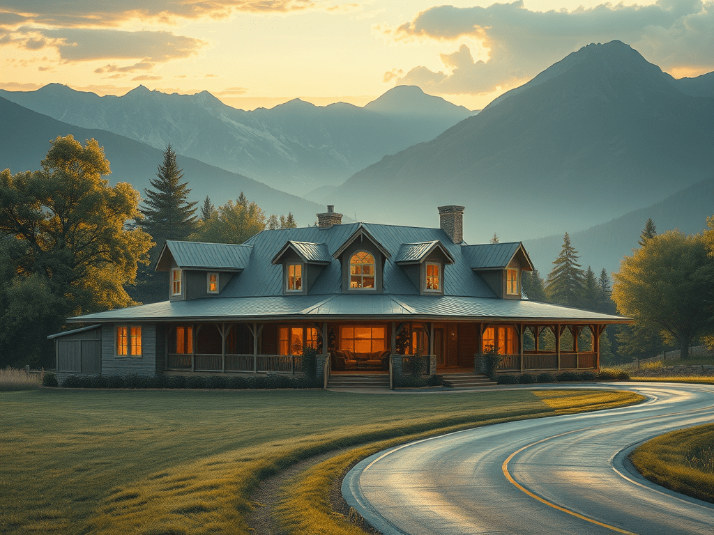 The one with a wrap around porch on a ranch. Sprawling ranch with windows looking out in every direction. Letting in the natural light at all hours of the day. Light weight curtains swaying in the breeze coming through the open windows. Inside, the walls are simply decorated, with a neutral wall color. The furniture is warm and inviting, creating an atmosphere of warmth and relaxation. There would be a constant smell of baking breads and sweet treats, permeating the air.