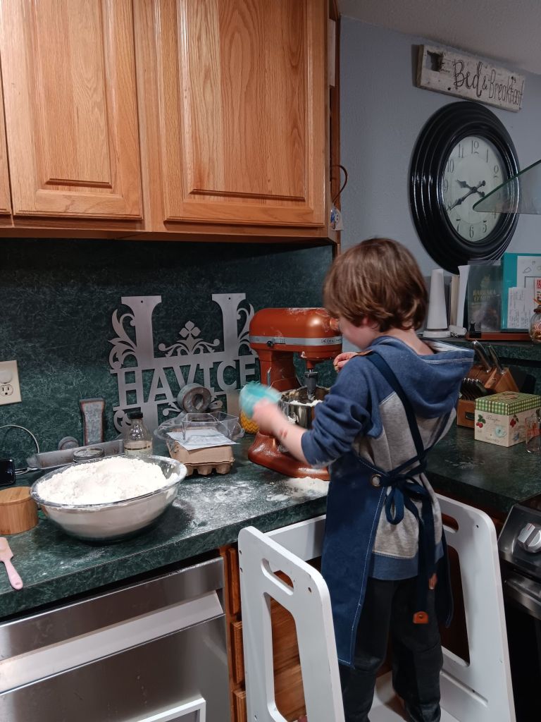 I got to watch my little boy problem-solve. I got to watch him thrive and rise to the new challenges of baking!