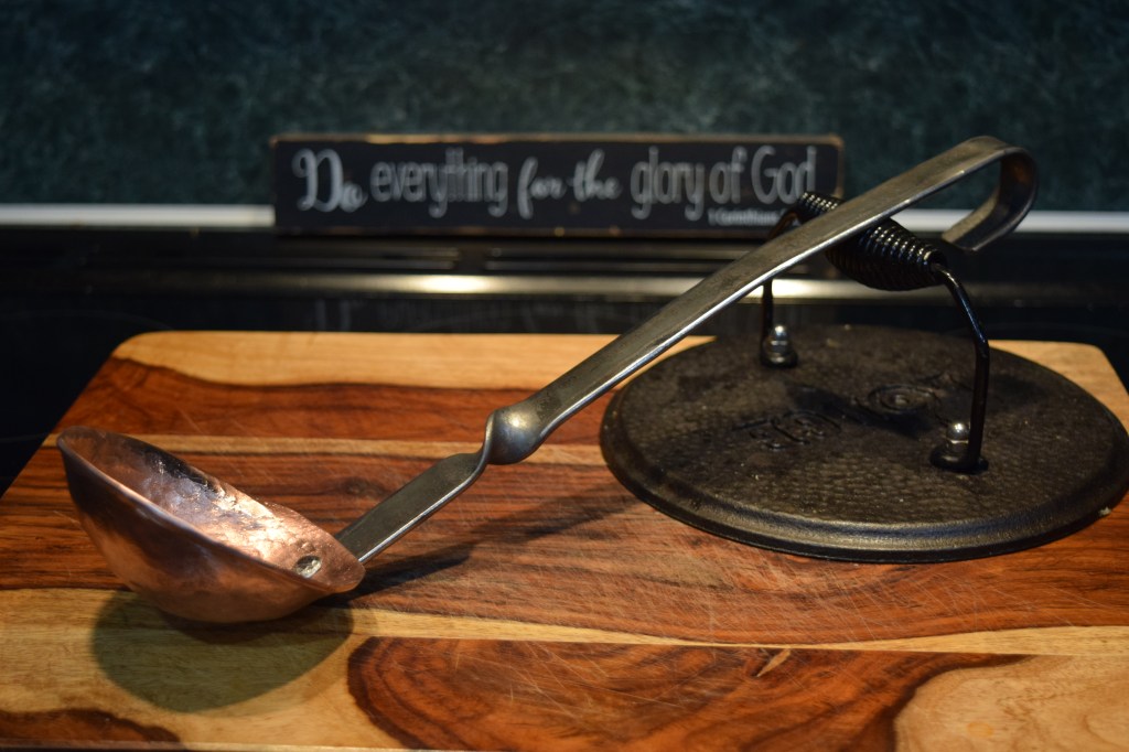 What an incredible man I married! He saw a need and filled it! My ladle (cheap plastic) was decapitated in a “sword” fight between him and the boys.